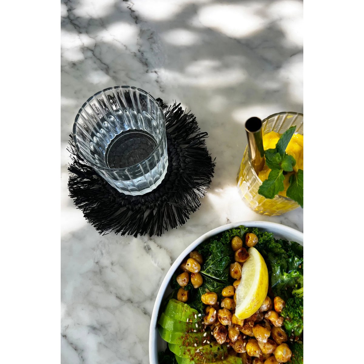 The Fringe Raffia Coaster - Zwart